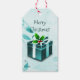 Crea un toque único a todos tus regalos de vacaciones con una etiqueta de regalo Verde azulada para Navidades. El diseño de la etiqueta de regalo presenta un vibrante regalo de Navidades verde azulados adornado con copos de nieve en caída contra un elegante desplazamiento y deja el fondo. También hay artículos de regalo y de vacaciones disponibles con este diseño.