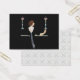 La elegante carta cuenta con un ilustracion vintage de una mujer vestida de negro que toca el piano. Excelente como una etiqueta de regalo o como una pequeña tarjeta de agradecimiento o de guardar la fecha. El reverso presenta un diseño brocado gris.