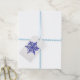 Un simple, grande copo de nieve azul y plateado está en la parte delantera de esta etiqueta de regalo. La parte de atrás está en blanco, para un mensaje personal.