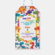 Etiquetas de regalo de cumpleaños de dinosaurios personalizables: toques de fiesta brillantes y alegres