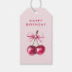 Agrega el toque final perfecto a tus regalos de cumpleaños y detalles de fiesta con esta etiqueta de regalo de cumpleaños feliz rosa con cerezas. Con un adorable diseño de cereza en un fondo rosa suave, esta etiqueta es ideal para un cumpleaños con tema de cereza, una celebración retro o una fiesta con tema de frutas dulces. Ya sea que la coloques en bolsas de regalos, regalos o detalles de fiesta, esta etiqueta encantadora y elegante hará que tus regalos sean aún más especiales. Personalízala con un nombre o mensaje para un toque único. ¡Perfecta para cumpleaños de niñas, fiestas rosadas pastel y celebraciones vintage de cereza!