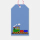 Pequeña etiqueta de regalo de diseño de tren con color de fondo de personalizable. En blanco para tu propio mensaje.