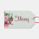 Be Merry Holiday Gift Tag con flores de invierno en la parte inferior y escritura decorativa junto con fondo verde del bosque que puedes personalizar a tus preferencias