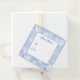 Esta etiqueta de regalo de Navidad se muestra con una impresión festiva de copos de nieve azules de las fiestas.
