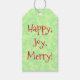 Mi obra de arte original aparece en esta etiqueta navideña, que consiste en mi diseño de un patrón vintage recreado en un tono de color verde lima. La parte frontal de la etiqueta dice "Feliz, Alegría, Alegre" en un divertido estilo de letra. La parte posterior de la etiqueta es de un tono verde claro complementario para su comodidad y placer al escribir. Este conjunto de 10 etiquetas de regalo está impreso en papel de gran gramaje, y cada etiqueta mide 3,5 pulgadas por 2 pulgadas. La etiqueta viene con una cuerda gris, pero puede cambiar ese color a su gusto. Esta divertida etiqueta hará que sus regalos se destaquen.