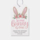 Haz que los recuerdos de tu fiesta de cumpleaños sean extra especiales con estas encantadoras etiquetas de regalo con tema de conejito. El diseño presenta un lindo conejito con una hermosa corona floral, agregando un toque de elegancia y fantasía a tu celebración. Perfecto para un primer cumpleaños, el esquema de colores rosa claro y dorado es universalmente atractivo. Las etiquetas se personalizan fácilmente con el nombre de tu hijo y los detalles del cumpleaños. Son el complemento perfecto para el tema de tu fiesta y crean recuerdos duraderos para tus invitados.