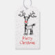 Estresmas de cerezo con Rudolph en una etiqueta de regalo para Navidades.