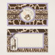 Zebra, jirafa, leopardo, huellas de chita con cintas de guarnecido de encaje y logos de jirafa y pacificador.