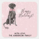 ¡Con un lindo Laboratorio Negro (Labrador Retriever) usando una corbata rosada con punteros polka! Puede cambiar fácilmente el color de fondo del rosa al gris o cualquier color que coincida con el de tu regalo. Coordina con nuestro Hogar {+ A Lab} para la colección Holidays.