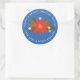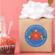 Añada un toque personal a todos sus regalos de vacaciones de esta temporada de Navidades con esta gran etiqueta de texto personalizada. El fondo de este pegatina de envoltura de regalo es un fondo atrevido, azul brillante y un poinsettia rojo central con ramas de pino verde, hojas y pequeñas flores.