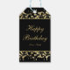 Etiqueta de regalo floral de aliento de bebé negro y dorado. Personalice como quiera.