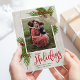 Utilice nuestra etiqueta de regalo verde foto de las tarjetas de vacaciones de la casa de campo con una foto para desear a sus amigos y familia una feliz temporada de vacaciones. Este diseño presenta un fondo de madera, una vegetación de cedro realista y bayas rojas. BONUS: El respaldo con patrones se puede quitar o cambiar a un color sólido. Vaya a la sección "Personalizar esta plantilla" y, a continuación, haga clic en "Hacer clic en el Personalizar más adelante" en la parte inferior. Para cambiar el patrón, pulse sobre la forma del ojo junto al nombre del patrón para activarlo o desactivarlo. Añade más fotos al dorso de tu tarjeta, así como texto adicional para crear tu propia carta de Navidades.