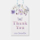 Agregue un toque encantador a sus favores de fiesta con esta etiqueta de regalo de flor silvestre púrpura que presenta flores de acuarela y una delicada mariposa. Perfecta para un primer cumpleaños, fiesta de jardín o celebración de primavera. Personalice con su nombre para un toque dulce y escrito a mano. Coordina perfectamente con decoraciones florales y de mariposas a juego en la misma colección.