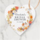Etiqueta de regalo para despedida de soltera con una hermosa corona de hojas y calabazas de acuarela.