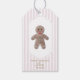 Añade un toque juguetón a tus regalos con esta etiqueta de Navidades de pan de jengibre con un personaje de galleta sonriente con corbata de arco. Este establecimiento, situado en franjas rosa pastel, es perfecto para unas vacaciones de envolvimiento, para intercambiar galletas y para los fiestas Navidades.
