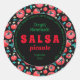Patrón de tomate de acuarela sobre fondo negro, para amante de la comida mexicana, jardinero de hortalizas caseras, productor de alimentos orgánicos, etiqueta de conserva de salsa casera, dip o untura, etc. El texto consiste en el nombre del producto, nombre del productor, fecha e ingredientes y se puede editar, eliminar o personalizar fácilmente.