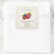 Elegantes y sencillas etiquetas cuadradas personalizadas de estilo vintage pintadas a mano con acuarela para tarros de mermelada de bayas surtidas sobre fondo ecru. Perfectas para vender, regalar o como favor de boda.