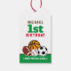 Decora tus favoritos deportivos de cumpleaños con nuestra etiqueta verde de todas las estrellas. El diseño presenta una mezcla de balones deportivos, béisbol, baloncesto, fútbol y fútbol con texto editable, gracias espero que hayan tenido una pelota de diseño verde y marrón.