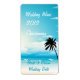 Océano azul verde azulado y cielo azul claro. Olas oceánicas estrellándose en la orilla, gaviotas flameando en el cielo y una silueta de palmeras - Invitaciones a la boda del Personalizable y extras a juego.