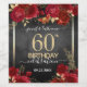 Elegante confeti de oro de Faux destaca en el borde superior e inferior. Rosas rojas profundas brillantes con acentos florales dorados. Todo el texto es ajustable y fácil de cambiar para sus propias necesidades fiestas. Gran diseño elegante de plantillas de cumpleaños número 60.