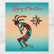 Personalice esta etiqueta de vino "One of a Kind" del suroeste de Kokopelli. Kokopelli toca la flauta y baila bajo el sol sobre un fondo turquesa y Naranja de atardecer. Diseño De Arte Original Del Artista Kerry Miller.
