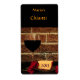 Este bonito rótulo de botellas enológicas muestra una sencilla imagen de un vaso de vino tinto oscuro, un plato de queso y flores rojas frente a una rústica pared de ladrillo naranja. Todo el texto se puede personalizar con su información especial.