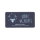 Este diseño de la etiqueta incluye silueta de antílamos de venado y copos de nieve en tonos azul cielo y pizarra sobre un fondo azul marino. Se ha proporcionado texto opcional de 'Happy Holidays' y una plantilla para agregar tu nombre y dirección. Busque ID861 a ID864 para ver opciones de color adicionales y otros productos en este moderno conjunto de diseño de Navidades.