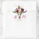 Caída de agua con ramo de flores sobre el cráneo de longhorn y fondo blanco gracias al diseño de la etiqueta para un boda bohemio moderno.