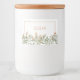Contenedor de comida con diseño floral suave y acuarela. Flores de color verde azulado y de chispa. Una forma elegante de etiquetar los envases de comida.