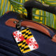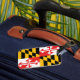 Etiqueta del equipaje con la imagen de la bandera estatal de Maryland.