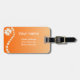 Etiqueta linda del equipaje que le dejará destacarse de la muchedumbre. Ofrece un fondo anaranjado con una margarita grande en la esquina superior izquierdo. Una fila de las pequeñas margaritas funcionadas con a lo largo del lado izquierdo. Usted modifica el texto para requisitos particulares en el centro.