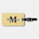 Fondo de tejido amarillo con monograma. Cartas monogramadas personalizadas y etiquetas de nombre para maletas y bolsas. Diseño elegante de tipografía. Un gran regalo para la familia y los amigos.