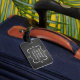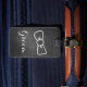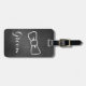 Etiqueta del equipaje del novio de la diversión hecha en una mirada de la pizarra del gris de carbón de leña, con los gráficos blancos del esquema de una pajarita, en el marco blanco delantero y decorativo, en la parte posterior. Personalice el texto blanco para adaptarse a sus necesidades. La etiqueta a juego del equipaje de la novia está disponible.