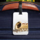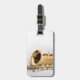 Esta etiqueta del equipaje tiene una imagen de un saxofón curvado del soprano.
