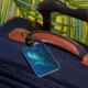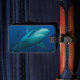 Foto fresca de un tiburón en su propia etiqueta del equipaje