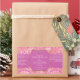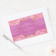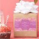 Etiqueta de producto con un patrón de damasco rosa en el fondo. Tiene espacio para su logo y sitio web.