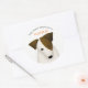 Estas lindas etiquetas de libros infantiles para chicas o niños tienen un perro Jack Russell ilustrado digitalmente con orejas marrones y un parche de ojos marrones, su cabeza se inclinó ligeramente hacia un lado - el texto dice "Este libro le pertenece" - personalizar el nombre del niño - Jack Russell Terrier con diseño de inclinación de cabeza © katz_d_zynes 2019
