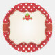 Esta etiqueta dulce de la baya ofrece el fondo rojo y blanco de los lunares. Una cinta roja, y una etiqueta linda estupenda del vintage. Ilustrado con tres fresas dulces.