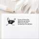 ¡Esta es una manera sencilla de promocionar su amor por los pollos! Un gráfico simple y lindo en blanco y negro de un pollo corriendo a la izquierda, con texto de dirección personalizable a la derecha. Perfecto para los productores de óvulos de los países o los habitantes de zonas urbanas permitieron la entrada de pollos en sus ciudades.