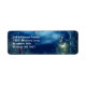 Etiqueta Dirección de Devolución Bosques Nocturnos con árboles, plantas, mariposas y luciérnagas de fondo.