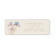 Estas elegantes etiquetas de dirección de devolución son perfectas para eventos de primavera y verano, con iris de acuarela en tonos de lila y azul pervinclo. Toques sutiles de dorado añaden un elemento brillante y mágico.