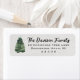 El elegante diseño rústico de la etiqueta de la dirección personalizado de vacaciones presenta un fondo rústico de grano de moda blanca con un sencillo pino de Navidades pintado en color agua. Personalice la redacción en gris carbón vegetal con el nombre de su familia y el texto de su dirección de retorno. Hace un bello acento para tus tarjetas de Navidades.