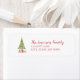 Etiqueta de dirección de devolución de árbol de navidad de color de agua suave. Este diseño presenta un bonito árbol de navidad acuarela y regalos. Personalice el nombre y la dirección de la familia.