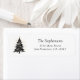 Una etiqueta de dirección de devolución festiva simple y moderna que tiene un árbol de Navidad negro y dorado a la izquierda de la etiqueta. Personalice fácilmente la tipografía negra con su nombre y dirección.