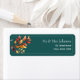 Agregue un encantador toque otoñal a la papelería de su boda con esta elegante etiqueta de dirección de devolución. Con hojas de otoño pintadas con acuarela en tonos cálidos naranja y rojo sobre un fondo rico en azul verde, es perfecto para sellar sus sobres con estilo. Ideal para bodas de otoño, invitaciones de Acción de Gracias o celebraciones rústicas, y fácil de personalizar con sus nombres y dirección.