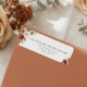 Completa tu papelería de boda con esta elegante etiqueta personalizada de dirección de devolución de nuestra suite de boda coordinada. Diseñada con suaves florales neutros y tonos cálidos terrosos, esta etiqueta de correo personalizada presenta delicadas flores marfil y acentos de terracota desvanecida para un look romántico y atemporal. La tipografía refinada combina perfectamente con temas de boda modernos, clásicos, bohemios, rústicos o de jardín, lo que la convierte en una opción versátil para tus invitaciones, anuncios de fecha, sobres de RSVP y tarjetas de agradecimiento.