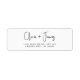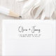 Etiqueta moderna de la dirección de retorno para sus invitaciones de compromiso, guardar las fechas, invitaciones de boda, tarjetas de agradecimiento y correspondencia recién casada con sus nombres en un guión de moda y su dirección en la tipografía clásica del serif.