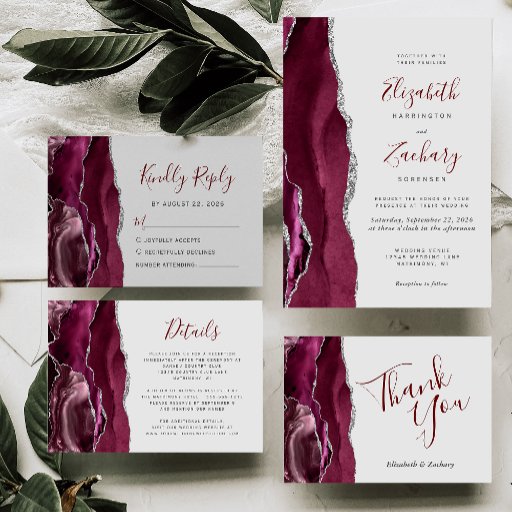 Burgundy Silver Agate Pale Gray Wedding SuiteDiseñado por Akhates Designs