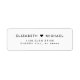 Etiquetas de dirección de devolución minimalistas y elegantes para sus invitaciones de boda, anuncios de ahorro de fechas, anuncios de compromiso, invitaciones a la ducha de parejas, tarjetas de agradecimiento y otra correspondencia. Personalice su monograma con sus nombres unidos por un corazón y su dirección de devolución en tipografía moderna simple.