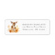 Etiquetas de direcciones de retorno con un ilustracion acuarela de un venado/flor de bebé rodeado de hojas de otoño en tonos naranja, rojo y amarillo. Personalice las etiquetas con su nombre y dirección. Las etiquetas de la dirección de los ciervos para bebés son perfectas para usar con invitaciones a la ducha para bebés, invitaciones para fiestas de cumpleaños y uso diario.